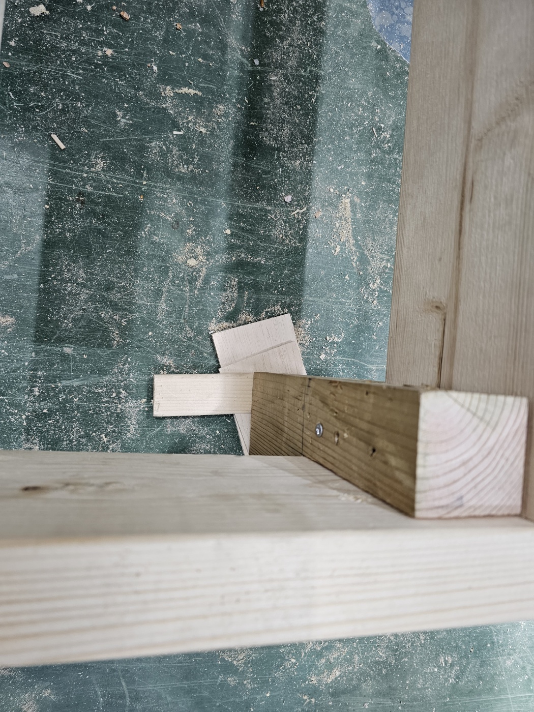 ㆍ쐐기 제작은 2x6이상의 나무를 나무의 결방향에 맞게 잘라준다. (각도는 2~3도)