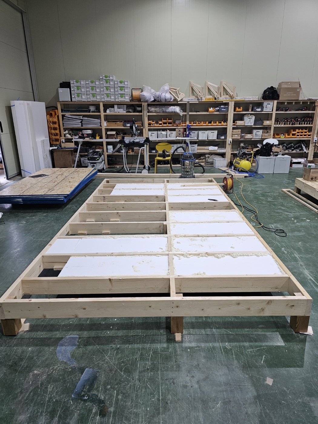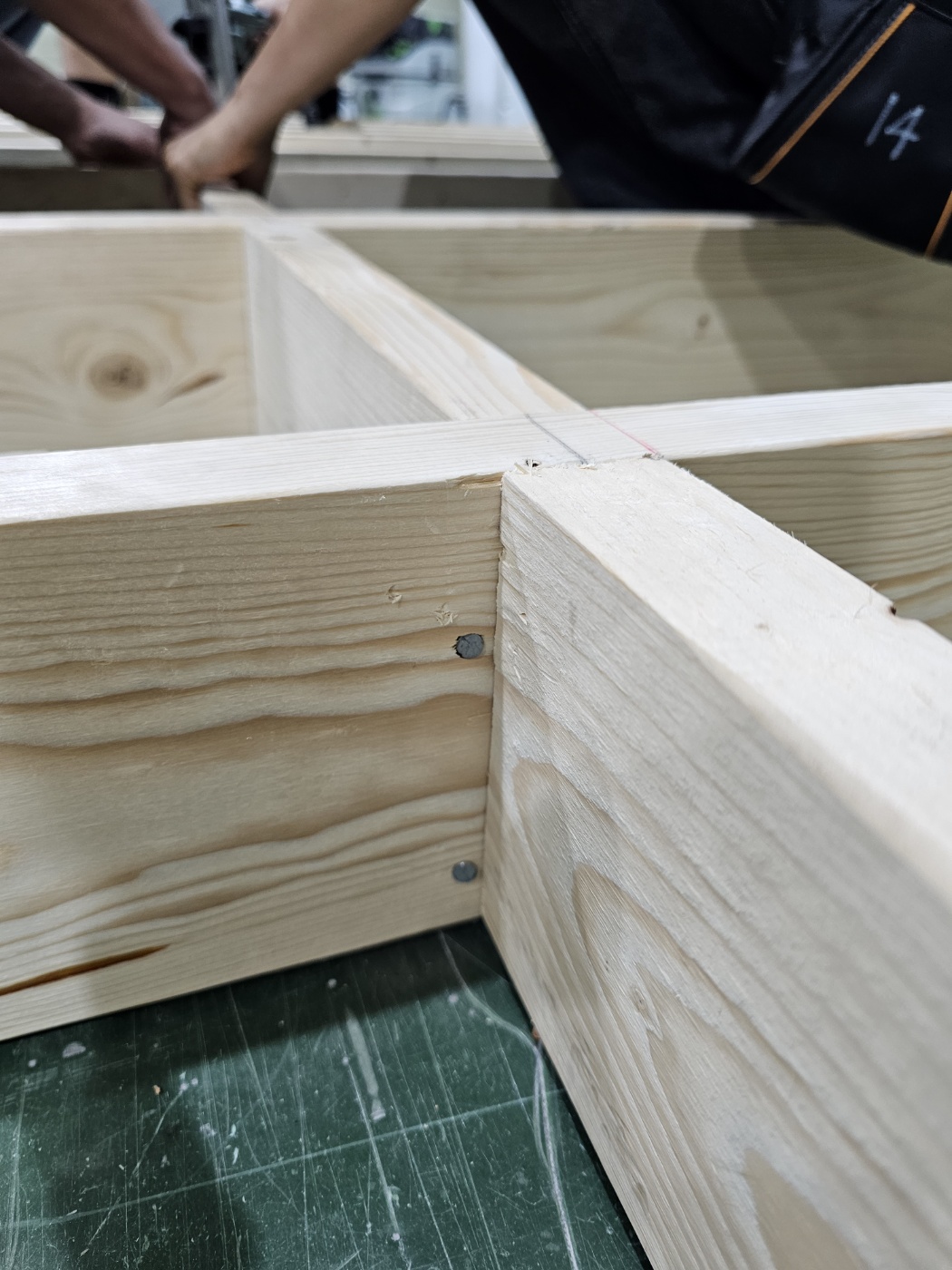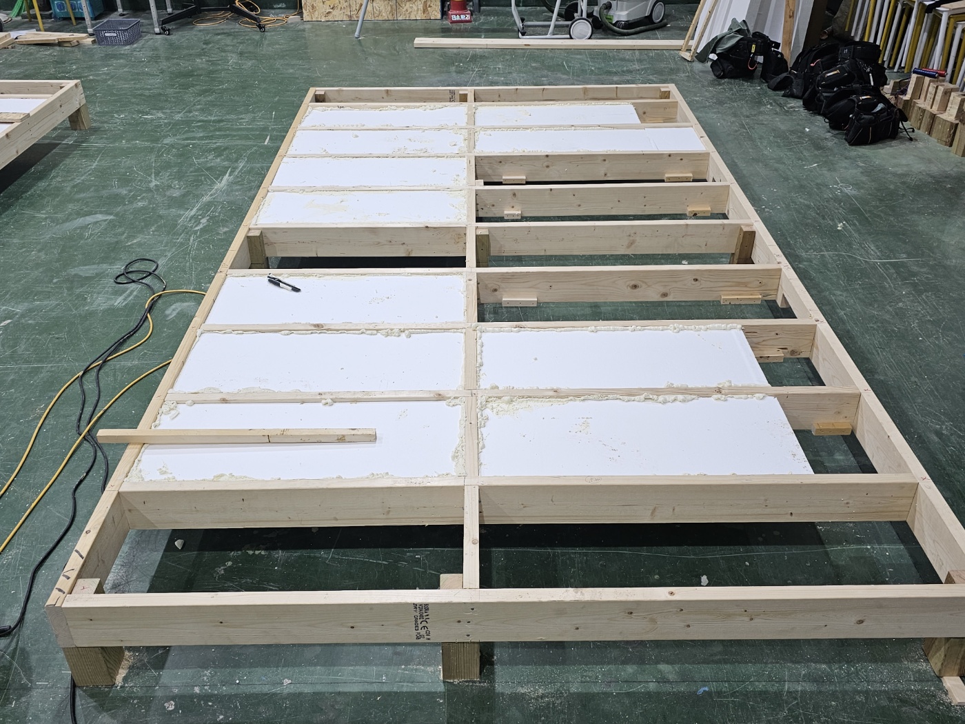 └ 스티로폼을 채우기 위해서 장선사이에 다루끼를 대서 스티로폼이 아래로 빠지는 것을 방지